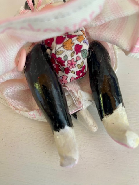 EDITH; A 6inch high polymer clay, button jointed doll with glass bead eyes. She is wearing a cosy cashmere sweater with an enamelled flower brooch . She has a pleated Gros Grain skirt with a black satin bow at the back, painted back stockings and pearly shoes. Her shoulder bag is a shimmery soft leather and can be opened. her beret is black velvet with a grey pom-pom on top. She comes in a box , £75 plus £8 UK postage , add £5 international post . SOLD ANGEL ; A 7 inch high polymer clay, button jointed doll with glass bead eyes. She is wearing a calico dress with a silk organza overlay and a vintage lace collar ( and lace socks). She has a diamanté buckle at the waist and her cardigan is cashmere. Angel is going to a party with her little wrapped present and her hair has a party sparkle. She comes in a box , £115 plus £8 UK postage , add £5 international post . MATILDA; A 7 inch polymer clay button jointed doll with glass bead eyes she comes with her peg doll Peggy . She is wearing a fine wool print dress with a velvet ribbon waistband . She has painted stockings and patent shoes . £110 plus £8 UK postage , add £5 for international post . SOLDMILLIE and PIP; A 7 inch high polymer clay button jointed doll with glass bead eyes. Millie is wearing a cotton frock , painted socks and patent shoes , and she has her needle felted pet dog Pip with her. £90 plus £8 Uk postage , add £5 for international.